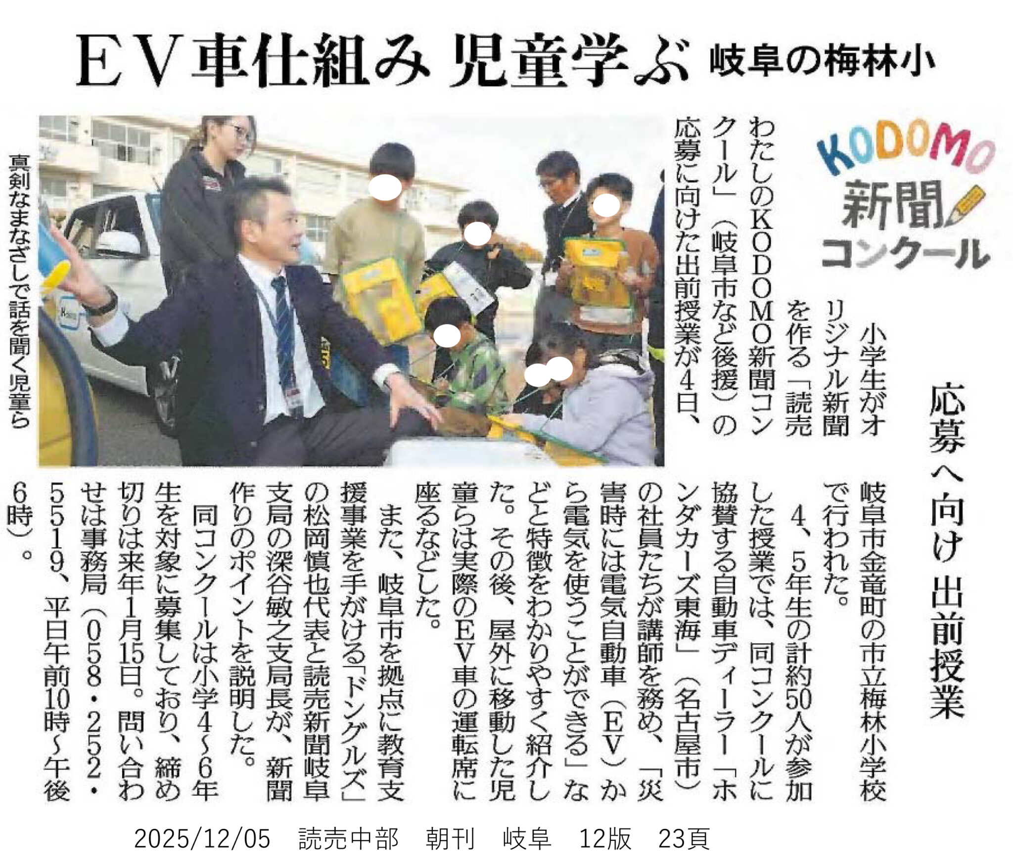 当社は2025年12月4日、岐阜市立梅林小学校(岐阜市金竜町)にて、「読売わたしのKODOMO新聞コンクール」に向けた特別授業を実施しました。