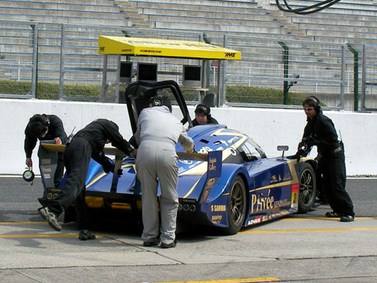 精密な測定、調整はSL終了後に行う事とし、まずは時間内にできる点検、修正を行い、SL待機。 8番手スタートの時点で、トップは43号車の3″503。ここまでの7台で、午前予選のタイムを上回るマシンは無い。