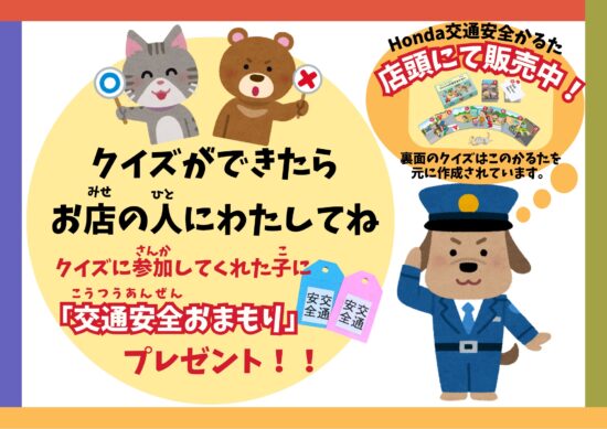 またショールームではうごくおえかきの裏面で交通安全クイズを開催❗️