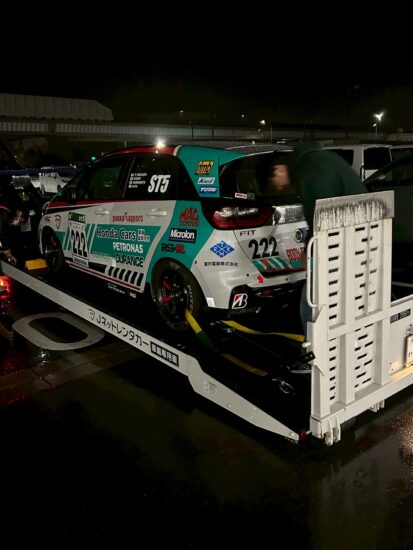 2026.03.19 本社 開幕戦🏎 おはようございます😃 本日3/19(木)です。 今から 『DURANCE J-net Cars Tokai FIT』222号車 S耐の開幕戦の地 『もてぎ」に向かって出発です。 しっかりとクルマを固定しました いってきまーす😁